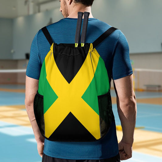 Drawstring Backpack Bag with Shoe Compartment Gym Sports Travel Dry And Wet Separation Light Jamaica Reggae