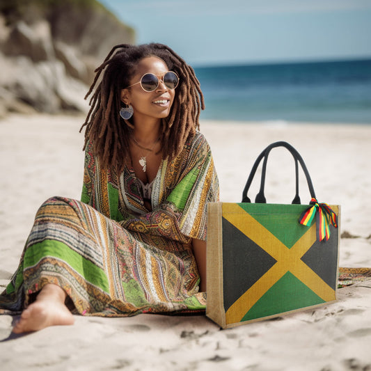Women's Canvas Tote Bag Waterproof Ribbon Beach Bag Jamaican Reggae Party Bag
