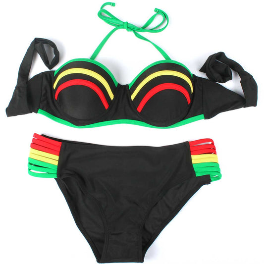 Women's Fashion Jamaican Caribbean Rasta African Grassland Yellow Red Green Bikini Swimsuit Swimwear