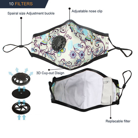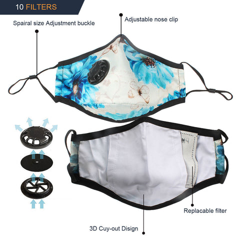 Face Dust Mask Anti Pollution Breathable Respirator Universal Mask +10 pcs PM 2.5 Filters Carbon Activated Filtration
